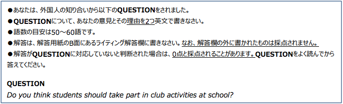 出典:実用英語技能検定「2級」ライティングの導入、4技能化のお知らせ