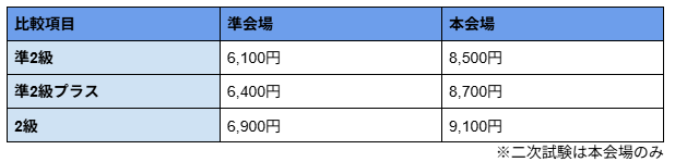 英検準2級プラスと準2級・2級における受験料(税込み)の違いは、以下のとおりです。
