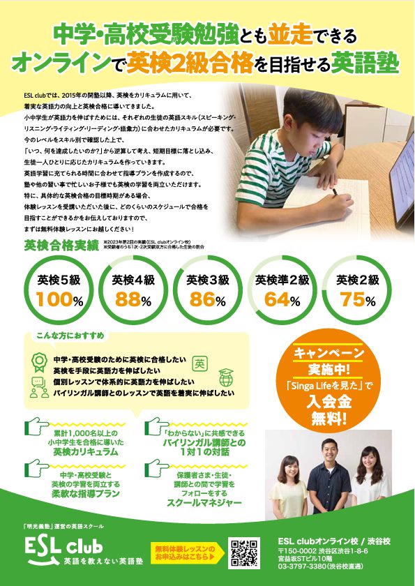 在シンガポール日本人向けフリーペーパー『週刊SingaLife』の別冊『教育ガイドブック2025秋』号にESL club が掲載されました!