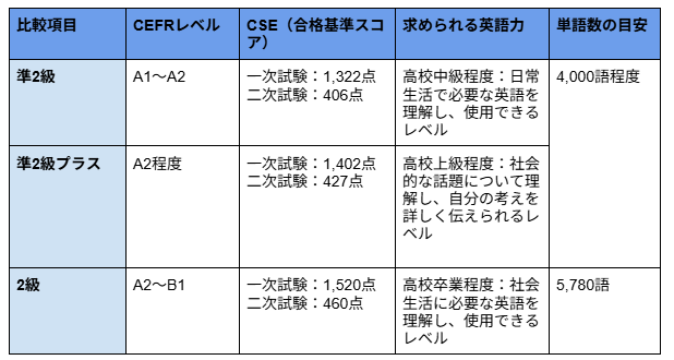 英検2級と準2級・準2級プラスは、文法と扱うトピックの難易度に違いがあります。