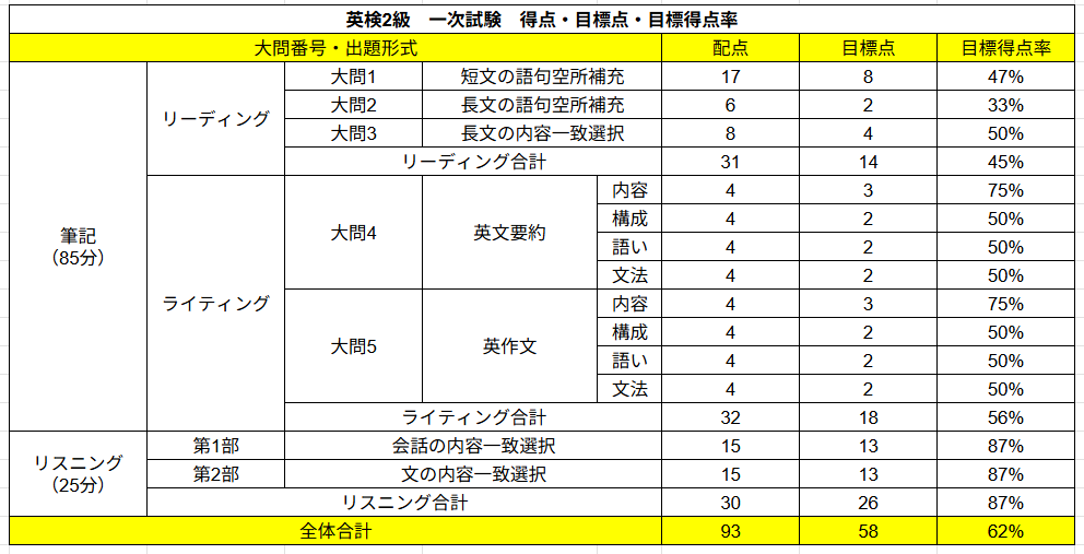 なお、この点数配分ではリスニングの目標点を高めに設定しています。