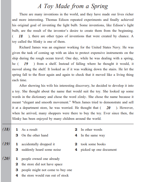 | No.1 | パッセージに関する質問 | 音読したパッセージの内容に関する質問に答える | 1 | |
