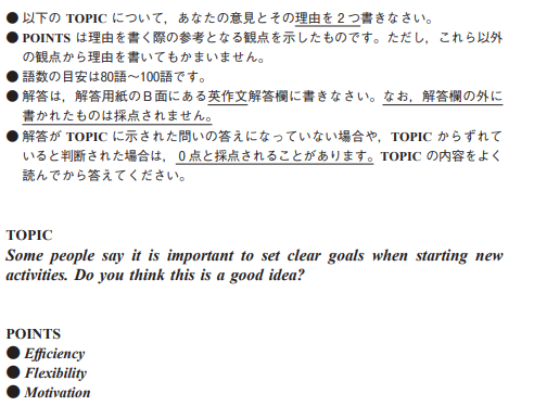 | No.3 | なし | 受験者自身の意見を問う質問 | ある事象・意見に関する自分の意見などを述べる(カードのトピックに関連した内容) | 1 |