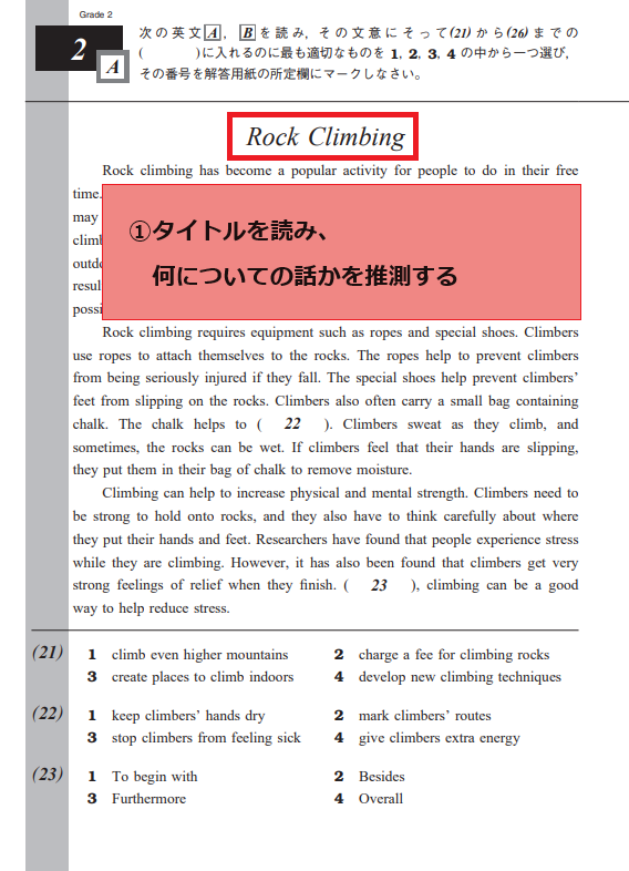 ① 英検2級リーディング各大問の最適な解き方がわかる