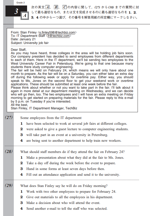 大問3A(Eメールの長文問題)は1問あたり何分で解くのが理想的か?