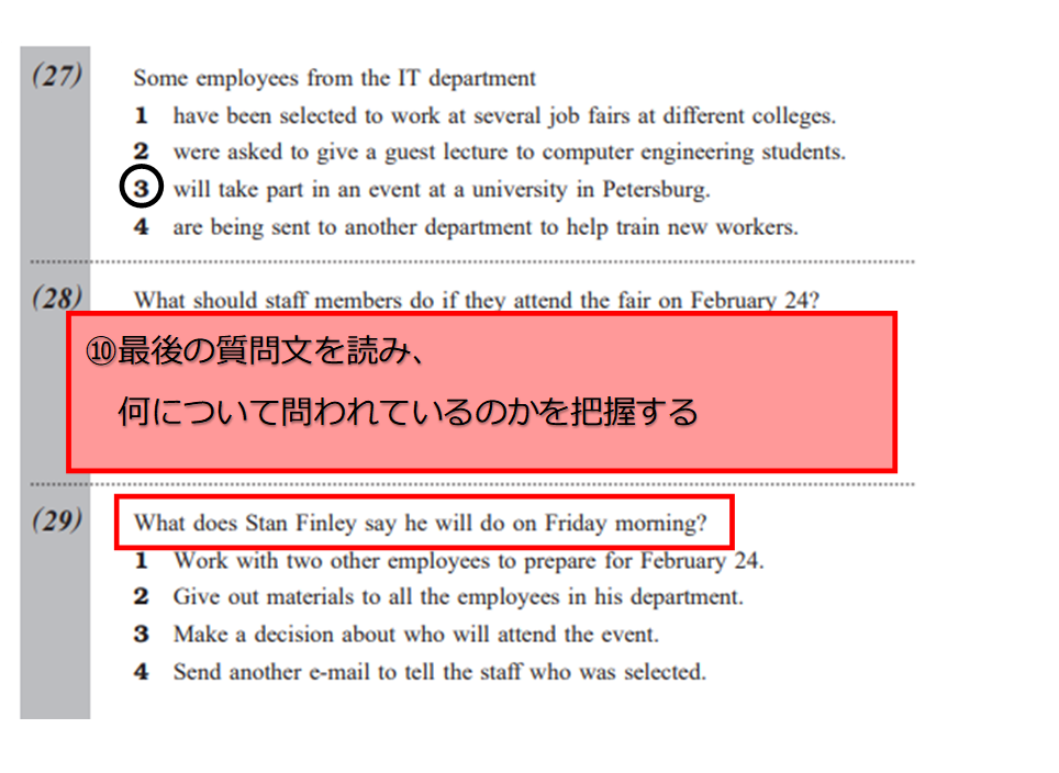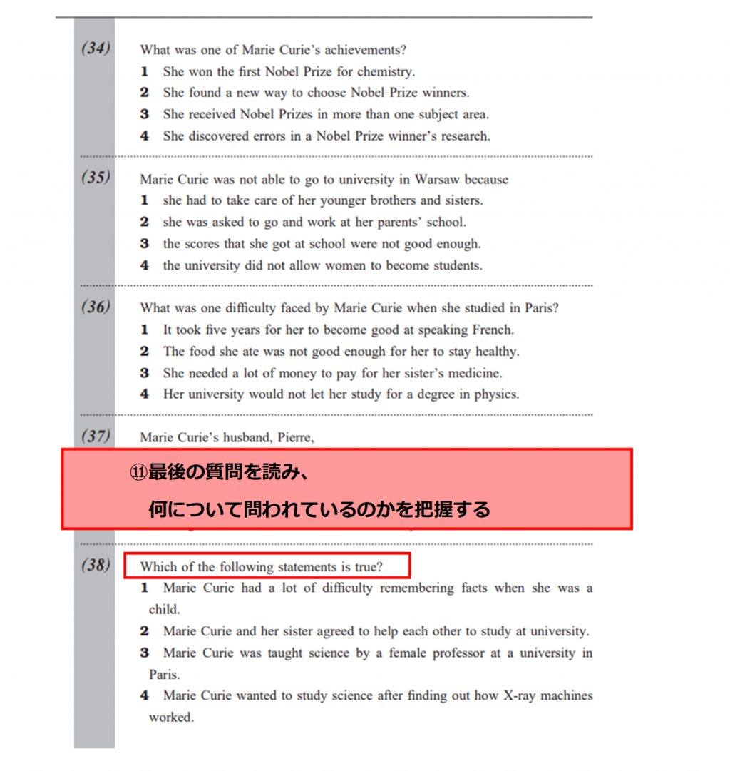 ⑪ 最後の質問文を読み、何について問われているのかを把握する
