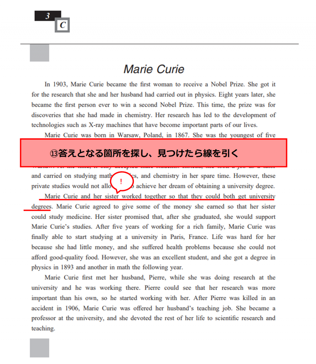 ⑬ 答えとなる箇所を本文中から探し、見つけたら線を引く