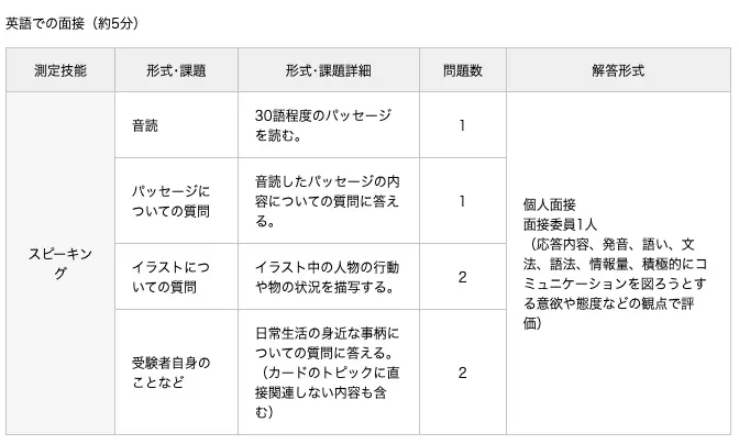 リーディング・ライティング・リスニングを評価する一次試験は筆記試験で、スピーキングを評価する二次試験は面接試験です。