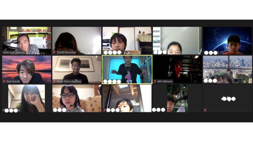 藤井新さんも通学する、アメリカ・ニュージャージー州のボーディングスクール、ローレンスビルスクールに通っている学生を3名交え、アーススクールの子どもたちはハークネスメソッドでの英語ディスカッションを体験しました。