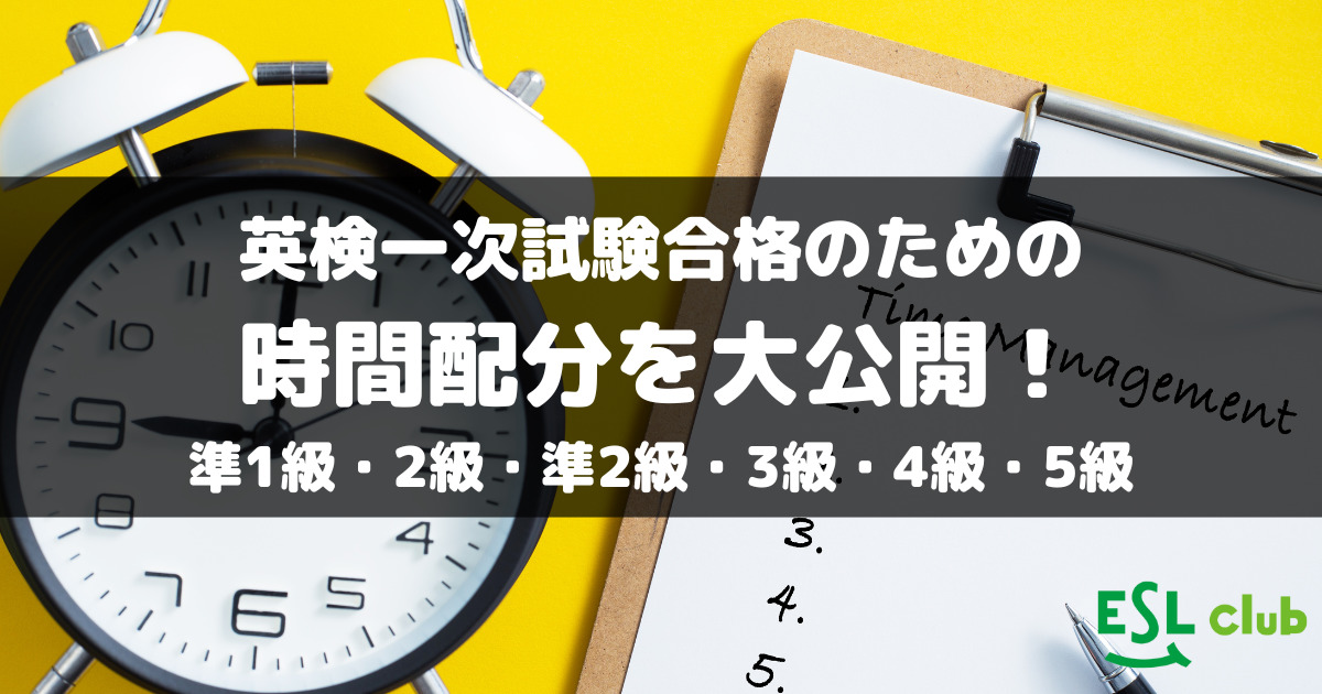 今回は、ESL clubでの実際の指導経験に基づいた、英検一次試験合格のための理想的な時間配分をお伝えします。