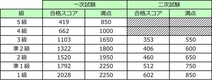 他の級の合格点・合格率が気になる方は以下の記事をご覧ください。