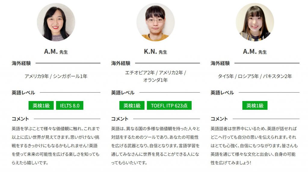他にも、英語を自在に扱える多数の帰国子女がESL club講師として活躍しています!講師インタビューは、以下よりご確認ください。