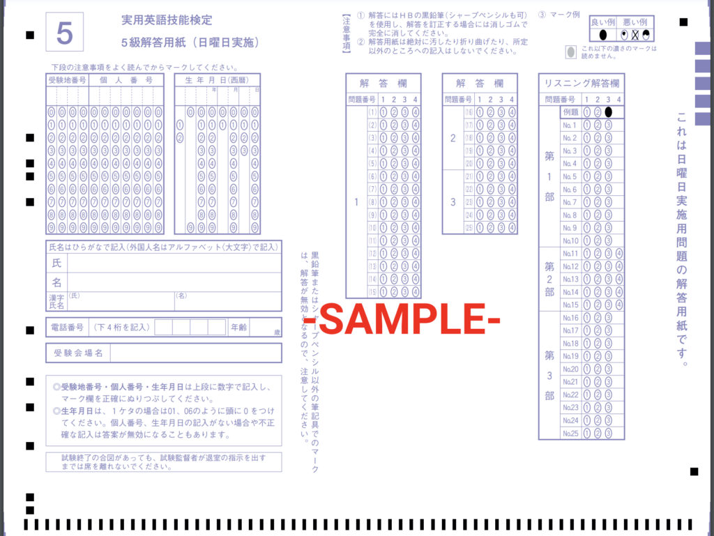(引用:5級試験解答用紙 SAMPLE)