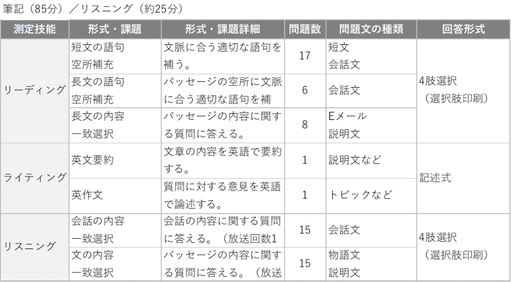 詳しくは英検の問題形式変更についてまとめた記事をご確認ください。